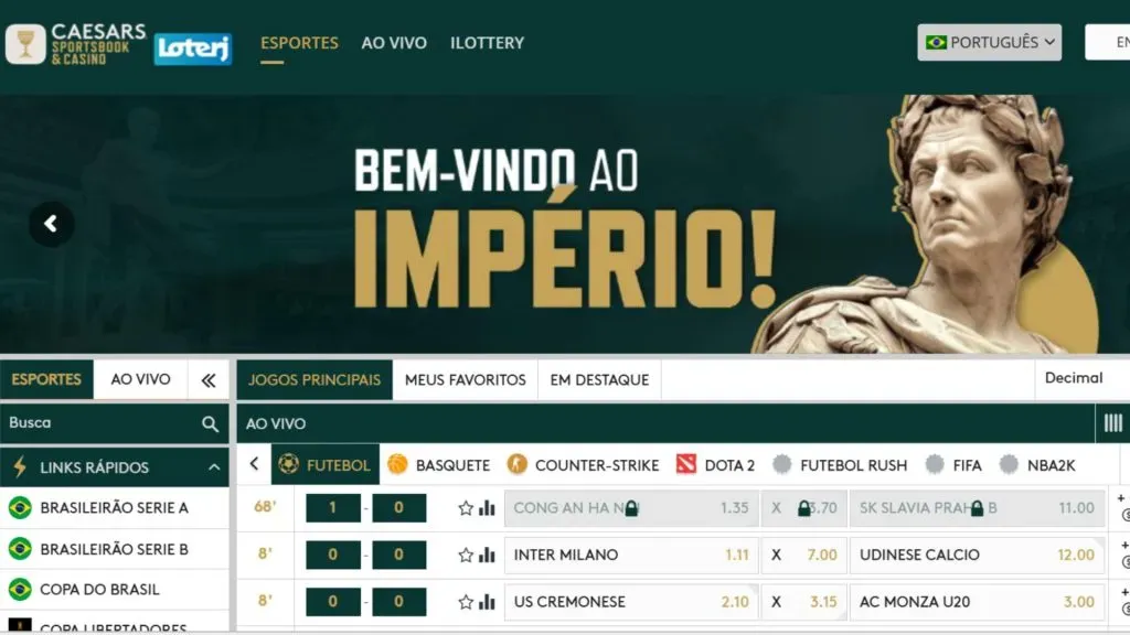 O futebol é o carro-chefe das apostas na Caesars Brasil. O código promocional Caesars pode ser particularmente interessante para os fãs deste esporte, embora atualmente não haja um bônus específico vinculado.